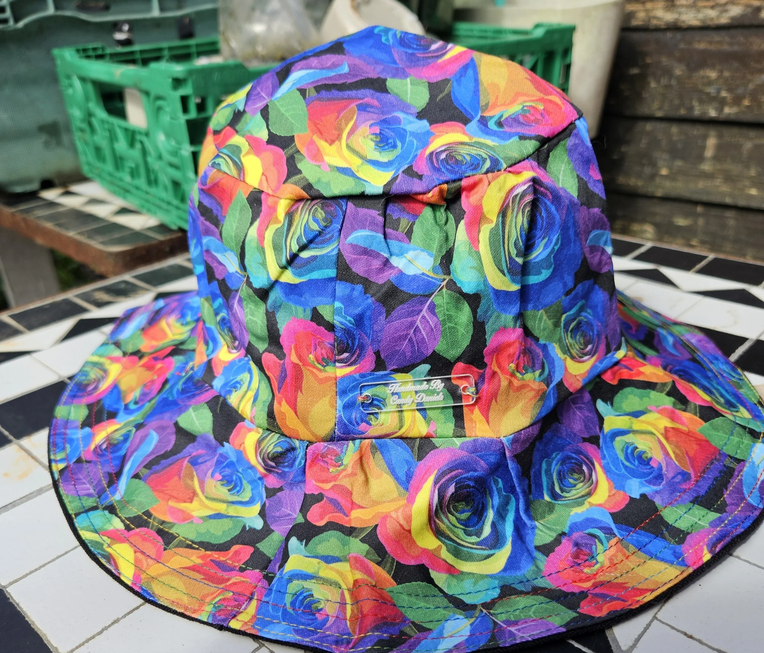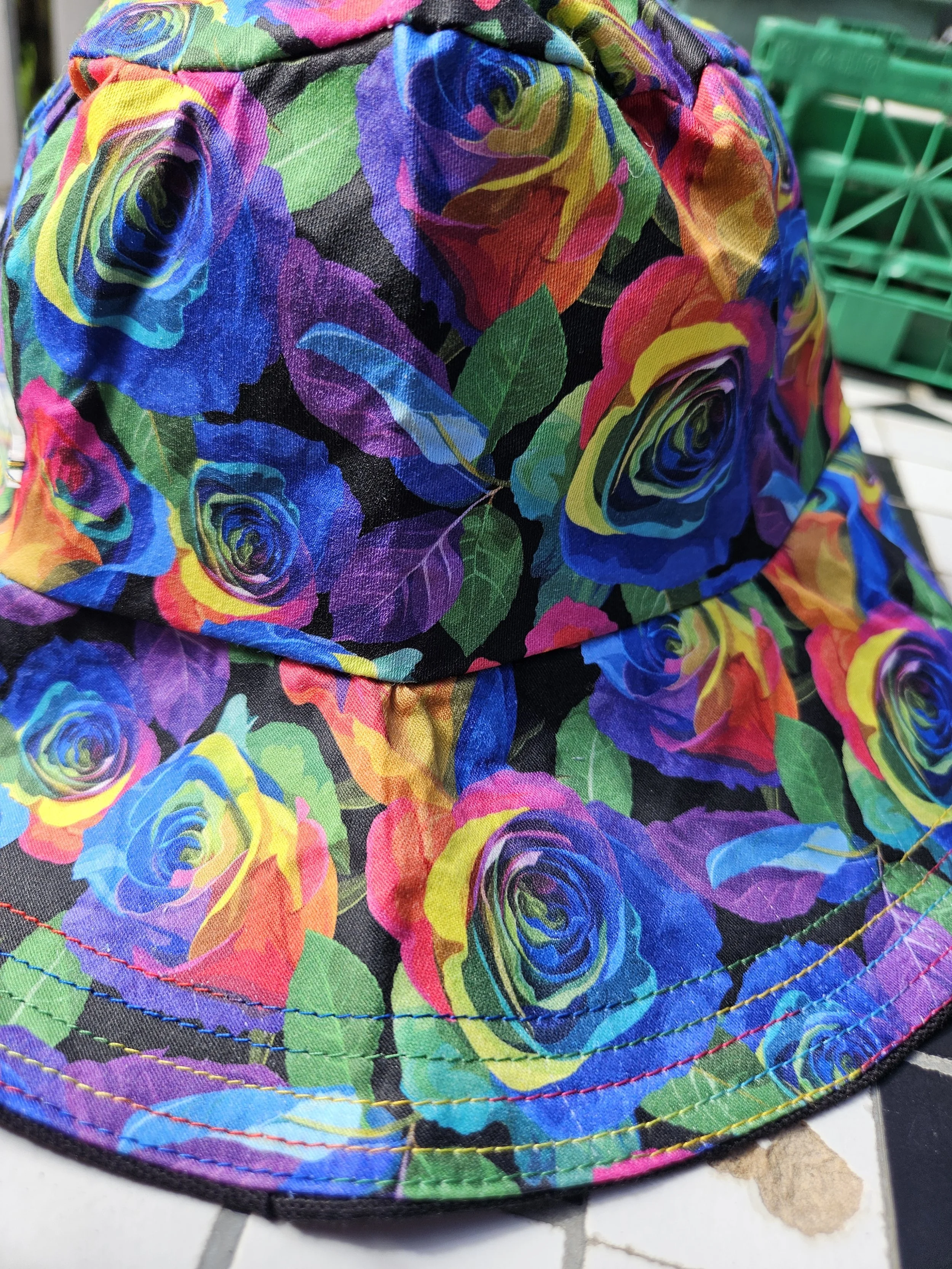 festival summer reversible bucket hat inclusiive hat rainbow roses