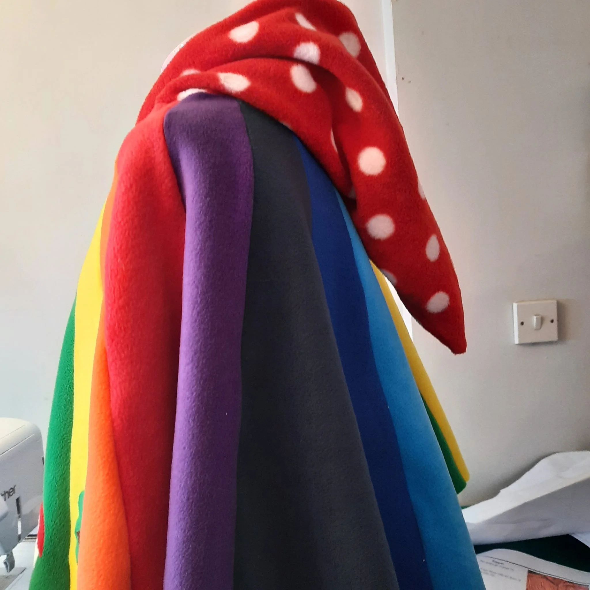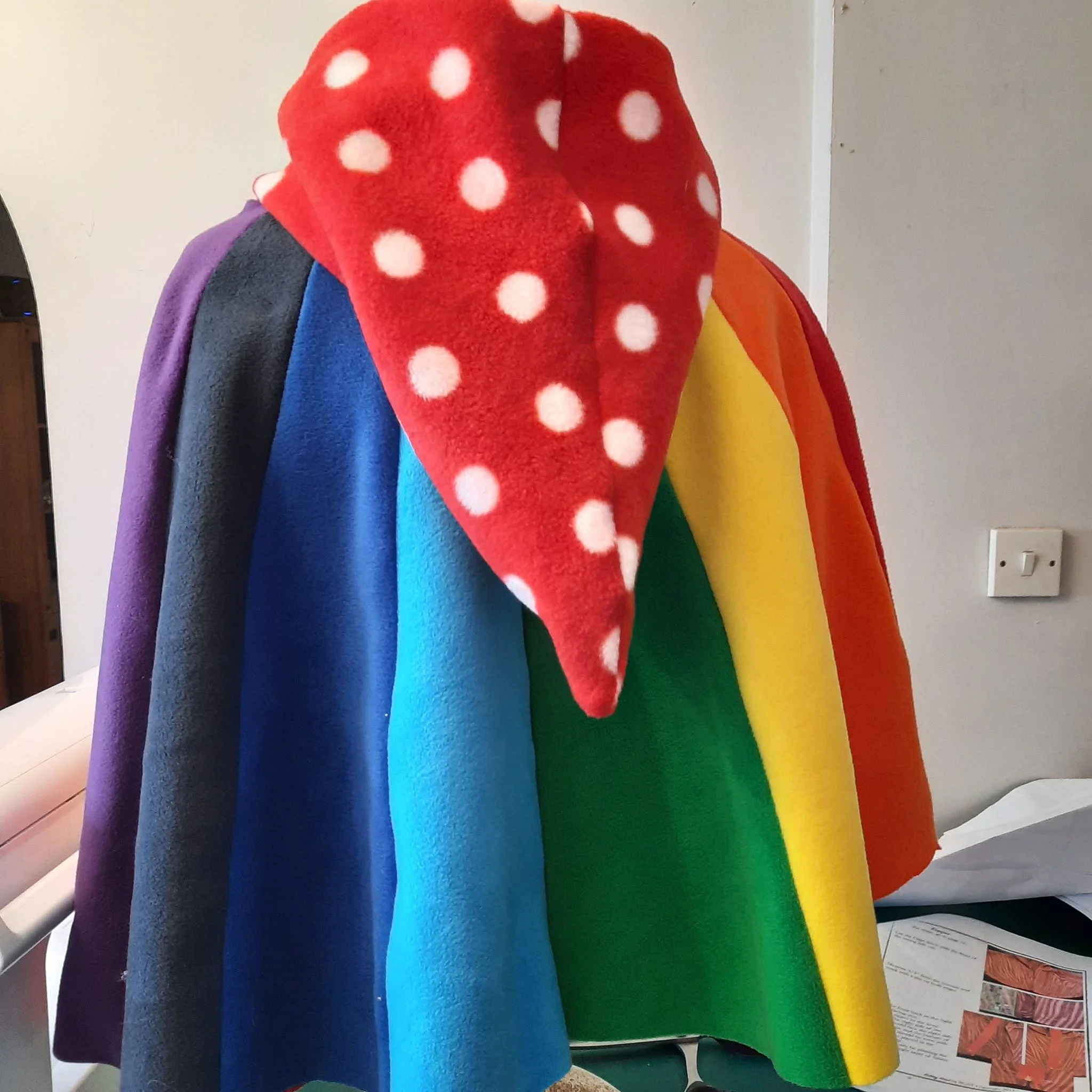 super warm and cosy double thickness adult rainbow pixie hood poncho ,