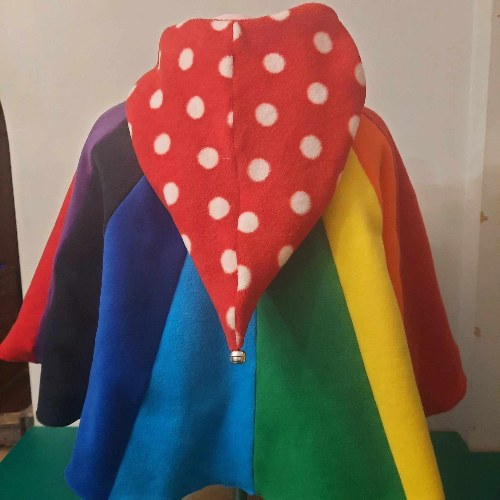 super warm and cosy double thickness childs rainbow pixie hood poncho ,